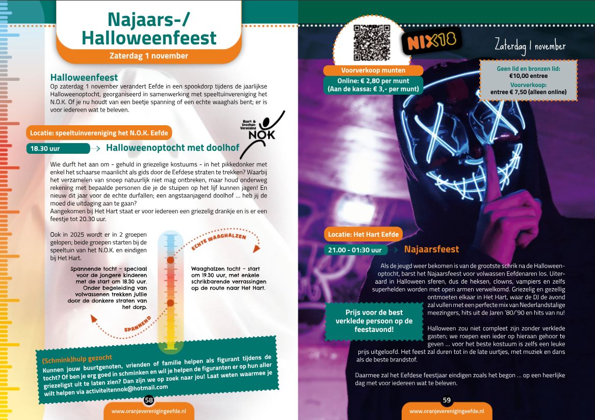 Op zaterdag 1 november verandert Eefde in een spookdorp tijdens de jaarlijkse Halloweenoptocht. Dit spannende evenement wordt georganiseerd in samenwerking met speeltuinvereniging N.O.K. Of je nu houdt van een beetje spanning of een echte waaghals bent; er is voor iedereen wat te beleven. Na deze angstaanjagende wandeling door het dorp, gaan de voetjes van de vloer tijdens het najaarsfeest in het Hart.